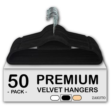 Premium ZAKUTO Velvet Black Hangers 50 Pack with 20 Hooks delivers non slip grip, heavy duty strength, 360° swivel convenience, and smart space saving design for slacks organization and closets.